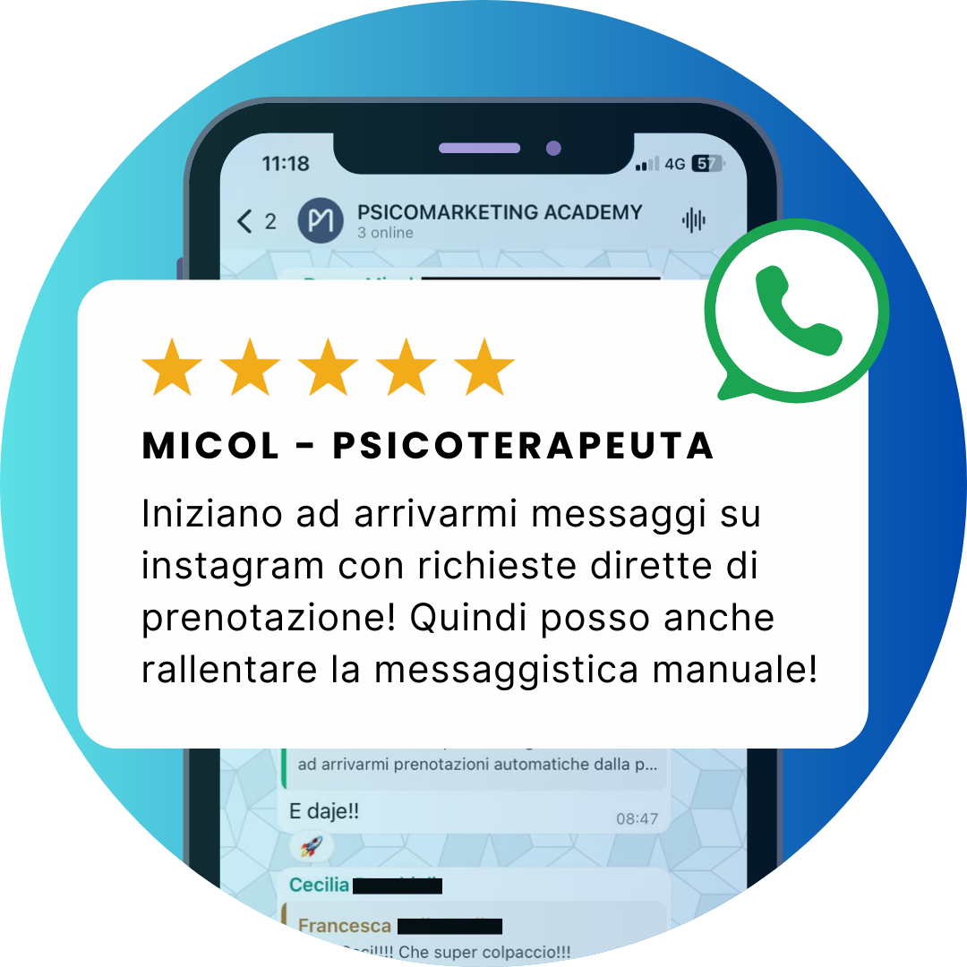 "Psicomarketing per me non è stato solo un corso, ma un’esperienza. Mi ha aiutato a uscire dalla solitudine professionale e a dare forma alle mie idee. Ho imparato a strutturare percorsi terapeutici, gestire meglio il tempo e dare il giusto valore economico al mio lavoro. Ho dimenticato quanto ho investito, perché è stato ampiamente ripagato e mi ha reso più soddisfatto e motivato come professionista"